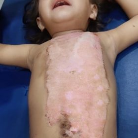 Baby Radhika, 3 year-old female child accidentally came in contact with hot oil and got burnt. She got approx. 25 % thermal burn injuries on face, hands, neck, back, chest and leg areas. The nature of the injury is critical and doctors recommended debridement procedures and further surgeries costing Rs 2,65,000 for a speedy recovery. To know more about the details you can view here case history here.